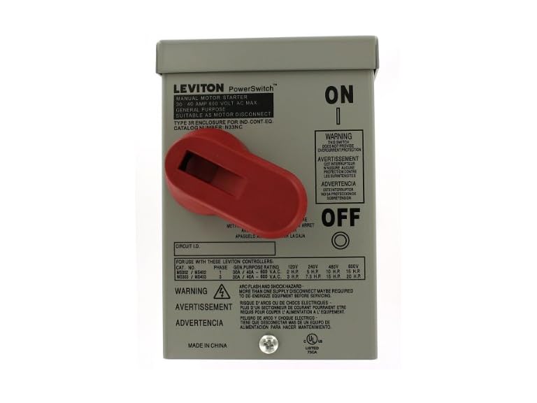 - Leviton Type 3R Enclosure (for use with 30 Amp or 40 Amp Motor Starter Controllers), Steel, N33NC-DS, Gray
