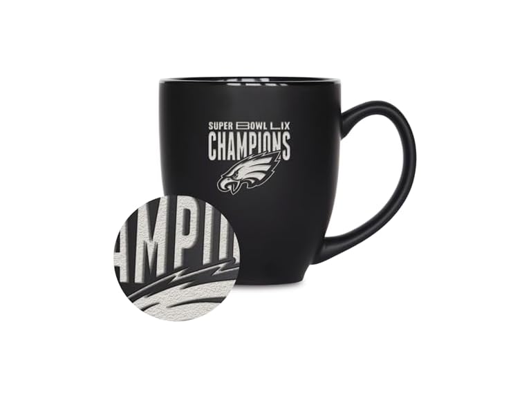 - (1) Rico Industries NFL Football Philadelphia Eagles 2025 Super Bowl LIX Champions 15oz Laser Engraved Matte Black Ceramic Bistro Mug - for Hot or Cold Drinks