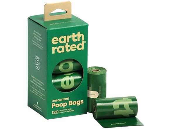 - (1) Earth Rated Poop Bags for Dogs Guaranteed Leak Proof and Extra Thick Waste Bag Refill Rolls, Unscented, 120 Bags