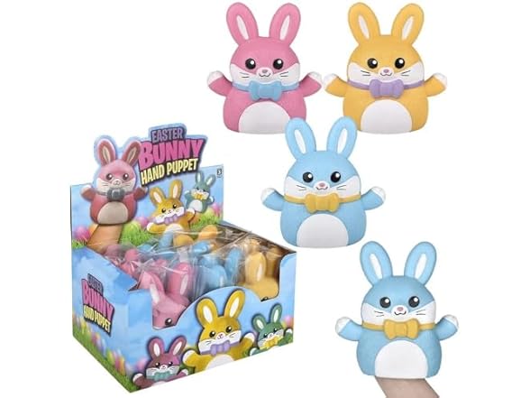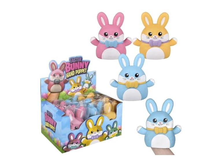 - Easter Bunny Stretchy Hand Puppet 6 Inch – Assorted Colors – 12 Piece Display