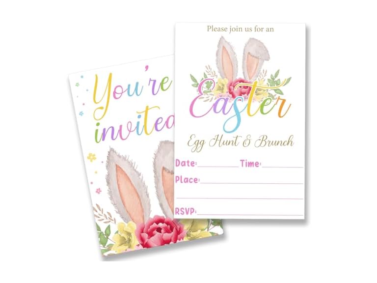 - YLKJSTYS Easter Egg Hunt Brunch Party Invitations, Bunny Easter Party Invites (20 Cards with Envelopes) Double Sided Design