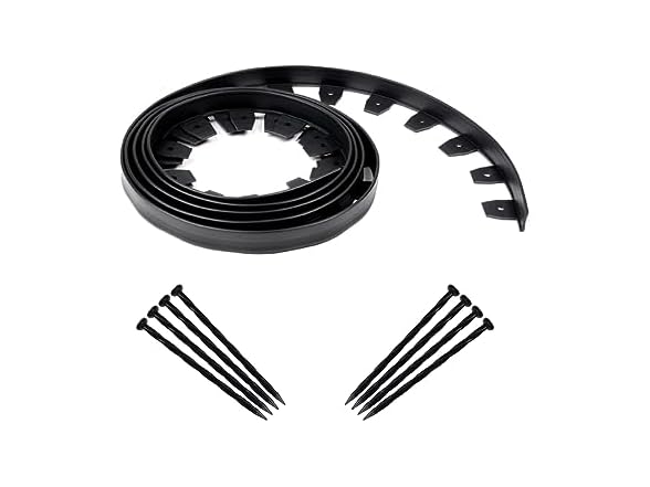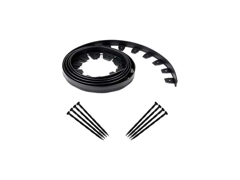 - KIT INCLUDES: 20-foot coil of heavy-duty black landscape edging and (8) 8-inch nylon spiral spikes to hold edging in place