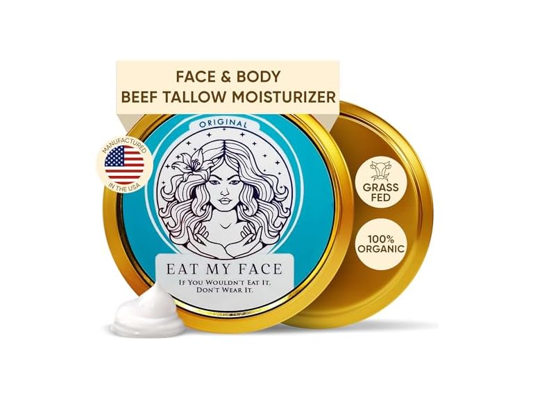 - GENTLE AND SUITABLE FOR ALL SKIN TYPES: Crafted with grass fed beef tallow for skin and free from harmful chemicals, our beef tallow moisturizer is suitable for tallow skin care for the whole family. Eat My Face tallow balm for face, neck, and body provides a soothing, subtle fragrance that enhances your skincare experience. Made with pure, high-quality ingredients, this facial tallow ensures a soft, smooth, and rejuvenated feel after each use.