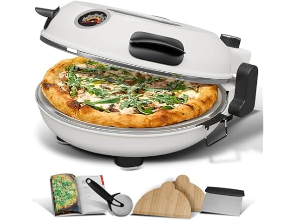 - Eatex Electric Pizza Oven Indoor, 12 Inch Countertop Pizza Oven, Portable Stone Pizza Oven, Heats up to 790°F for Crispy Crust, Pizza Maker Machine for Home – Cream