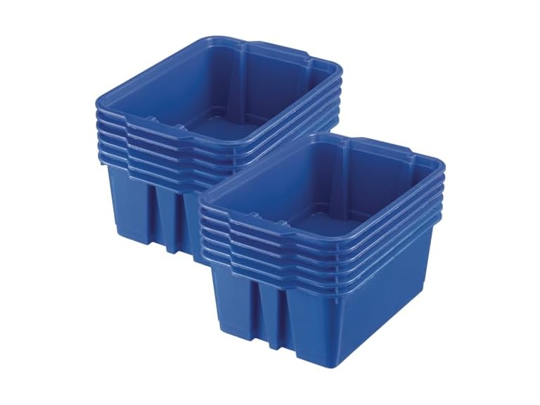 • Really Good Stuff-160074BL Stackable Plastic Book and Organizer Bins for Classroom or Home Use – Sturdy, Colored Plastic Baskets (Set of 12)