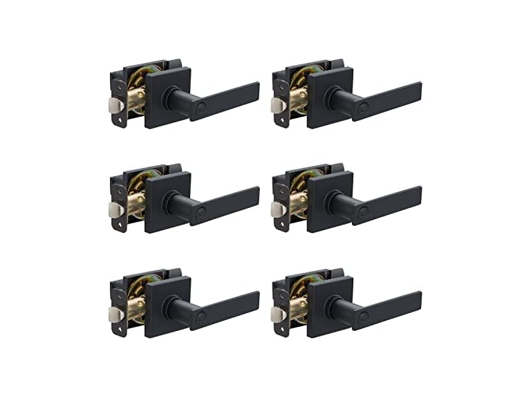 - Includes a 6-pack of bed and bath door levers made of durable metal with a square shape and matte black finish