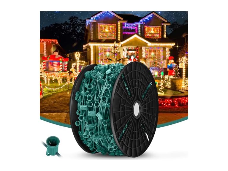 - Durable & Weather-Resistant: Built to last, our C9 Christmas light spool is made from high-quality, durable materials that are both weatherproof and fade-resistant. This ensures it withstands dust, rain, and snow, making it a perfect choice for all outdoor settings, including roofs, trees, patios, stairways, driveways, and pathways