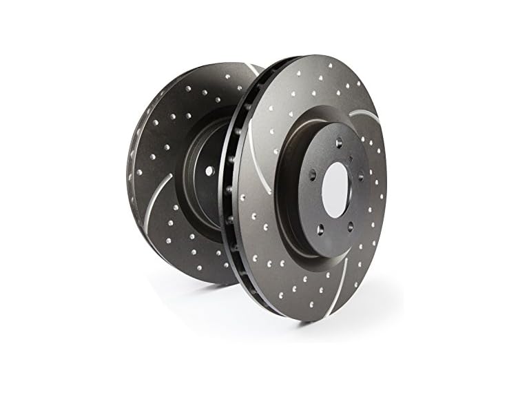 The latest in sport rotors features wide aperture slots that draw cool air into the braking contact area and reduce temperatures preventing brake fade. Dimple drilling avoids stress cracks and the new gold anodized EBC finish provides great looks whilst preventing corrosion. EBC sport rotors now feature reduced 3 slot venting which provides slightly less air noise under heavy braking whilst still maintaining the benefits of cooler running with the full width slot design. The design of these rotors means that some wind noise is observed and if drivers feel they would find this offensive they are advised to select the quieter USR Ultimax series or the EBC plain rotor. Another great feature of slotted rotors is the way they maintain flat and parallel pad wear and avoid the record grooves or galling common with non-slotted rotors. This improves pad contact and braking throughout the life of the rotor and pad set.