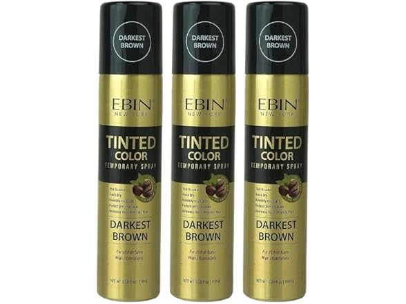 - (1) EBIN NEW YORK Temporary Hair Dye – 3x Tinted Color Temporary Spray (DALKEST BROWN) (3.38oz) (100ml) bundle Pin-Point Nozzle Applicator Hair Protectant – Gift Set (3 Items)