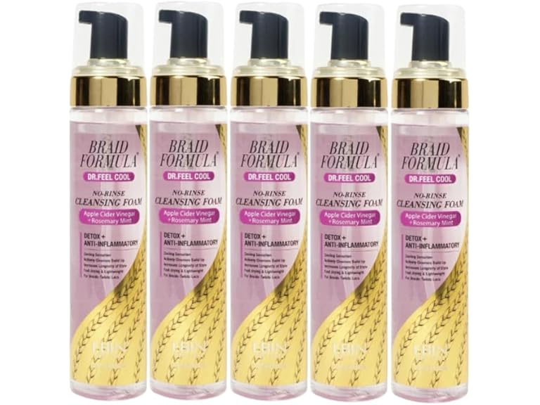 - 𝗖𝗟𝗘𝗔𝗡𝗦𝗜𝗡𝗚 𝗙𝗢𝗔𝗠 𝗦𝗘𝗧 – This gift set includes 5x Dr. Feel Cool No-Rinse Cleansing Foam with Braid Formula No-Rinse Cleansing Foam 8.5 oz by EBIN NEW YORK bundle for scalp refresh and braid care (Packaging May Vary).