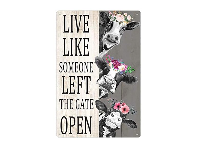 - (1) KJSKH Funny cow metal poster live like someone left the gate open metal tin sign cafe farm farmhouse bathroom living room kitchen home art wall decoration plaque