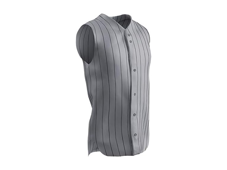 - CLASSIC STYLE: Set-in arm holes along with a button-down front and pinstripe body give this jersey a classic look. Arm holes are double-needle hemmed for durability.