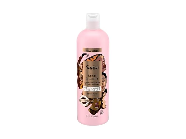 Let your natural curls and coils shine! New look, same great formula for natural hair. We are excited to announce our new and improved artwork for Suave Pink Lush & Coily Collection was designed in partnership with artist and entrepreneur, Ashley "Pinklomein" Price. Our Lush & Coily line is infused with natural shea butter, known to deeply moisturize, and pure coconut oil, known to help fight frizz, reduce breakage, and enhance shine. This curl conditioner is also completely color-safe! Plus, the scent is oh-so divine. Just apply to wet hair and gently massage this moisturizing conditioner from roots to ends. Rinse thoroughly and repeat as needed. For ultimate moisture, pair this conditioner for curly hair with the Sulfate Free Shampoo. These unique formulations for coily hair were influenced by a community of over 5,000 women with natural hair to deliver the rich moisture and gentle care most needed by women with curly, coily, and wavy hair. At Suave, we have been helping America live beautifully since 1937. We believe everyone deserves access to beauty that sparks happiness for your hair, body, and soul. Since the 1940s, we have been developing safe, high-quality ingredients designed to bring joy to you and your entire family as you use them every day. Whatever you and your family’s personal care needs, you can have complete confidence that Suave products will help you boost your mind, body, and spirit while adhering to the highest global safety and quality standards. Globally, Suave does not test on animals and is Certified Cruelty-free by PETA.