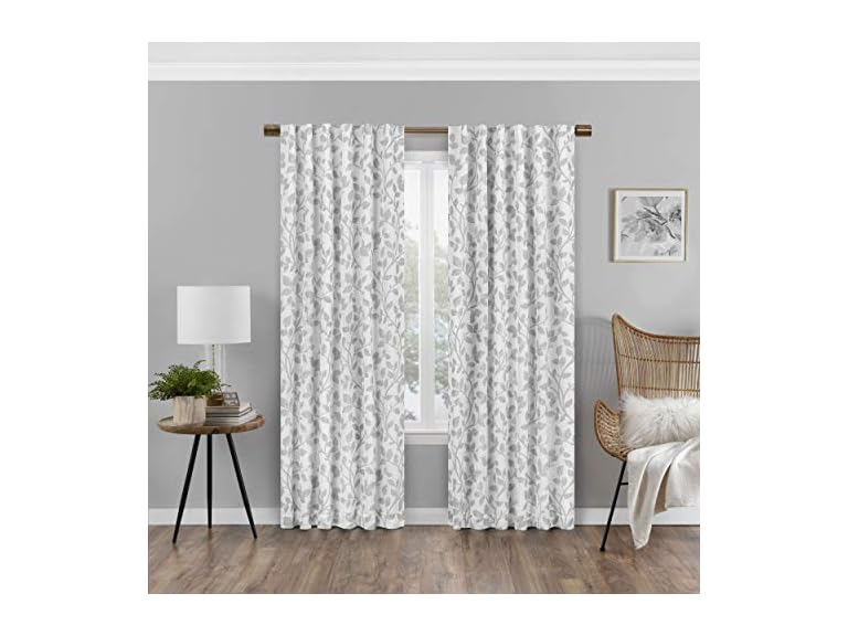 - (1) Eclipse Absolute Zero Nora Botanical Blackout Thermal Insulated Rod Pocket Curtains for Bedroom, Single Panel, 50" x 108", White