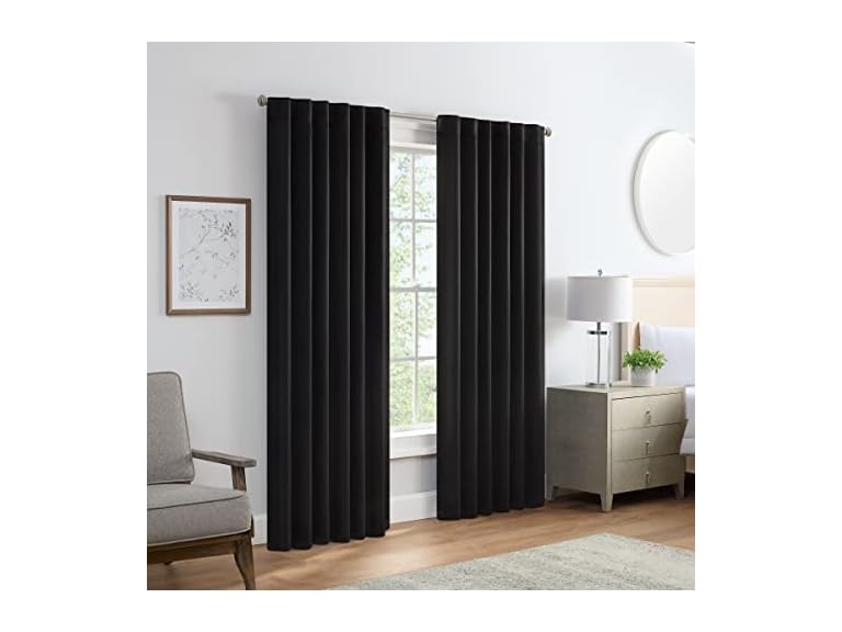 - (1) Eclipse Langley Solid Tripleweave Room Darkening Rod Pocket Window Curtains (2 Panels), 52 in x 63 in, Black