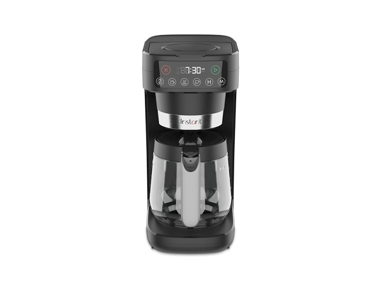 We’re curing coffee cravings one perfectly programmed brew at a time. The Instant Infusion Brew Plus 12-cup Coffee Maker quickly brews a full carafe of your favorite filtered ground coffee, made just how you love it. Packed with premium features and customizations, Instant® Infusion Brew Plus is designed to help you program coffee your way, any time of day, at the touch of a button. The innovative showerhead and pre-infuse technology soaks coffee grounds evenly to extract deeper flavor for optimum taste. A large, removable water reservoir makes refills and cleanup a breeze, plus an integrated carbon water filter delivers pure coffeehouse results. Choose between 2 brew strengths — classic or bold — or small batch brew 1-4 cups to reduce waste and amp up taste. An adjustable warming plate keeps your freshly brewed coffee hot for up to 4 hours with 3 temp options. A 24-hour timer lets you set up auto-brew before bed for a hot cup in the morning. Instant Infusion Brew Plus also brings sleek design to your counter that looks as good as the coffee it brews: a premium glass carafe, chrome finishes, LED display with touchscreen controls and a reusable gold-toned filter. Set your timer tonight and wake up to the aroma of fresh, hot, perfect brew.