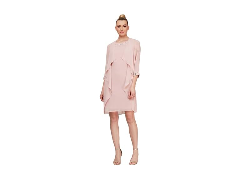 - (1) S.L. Fashions Women's Chiffon Tier Jacket Dress Neck, Beaded Faded Rose, 18