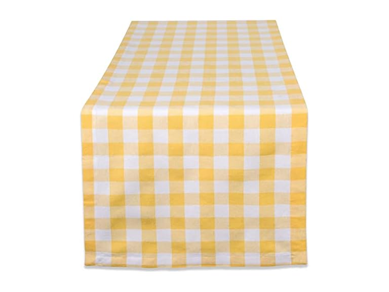 - (1) DII Checkered Tabletop Collection 100% Cotton, Machine Washable, Table Runner, 14x72, Yellow