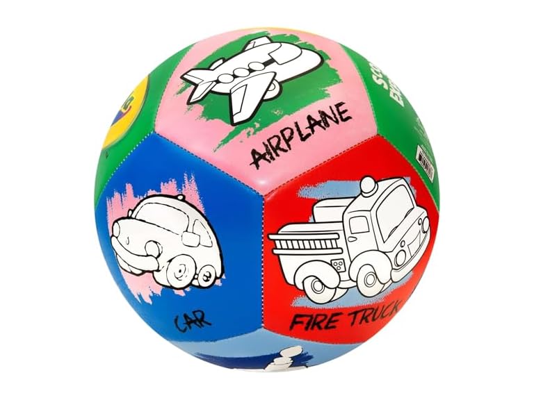 - Component Explanation | Durable Synthetic Panels – Made with sturdy synthetic panels and reinforced machine stitching, this ball offers durability and long-lasting shape. Featuring Crayola-inspired transportation patterns such as cars, buses, airplanes, and trains, it adds playful energy and imagination to every kick