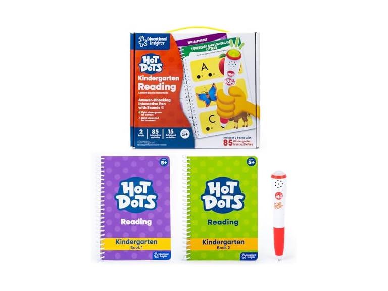 - (1) Educational Insights Hot Dots Kindergarten Reading Set - Kindergarten Workbooks with Interactive Pen, Homeschool Learning Activities, Learn to Read Activity Books for Kids Ages 5+