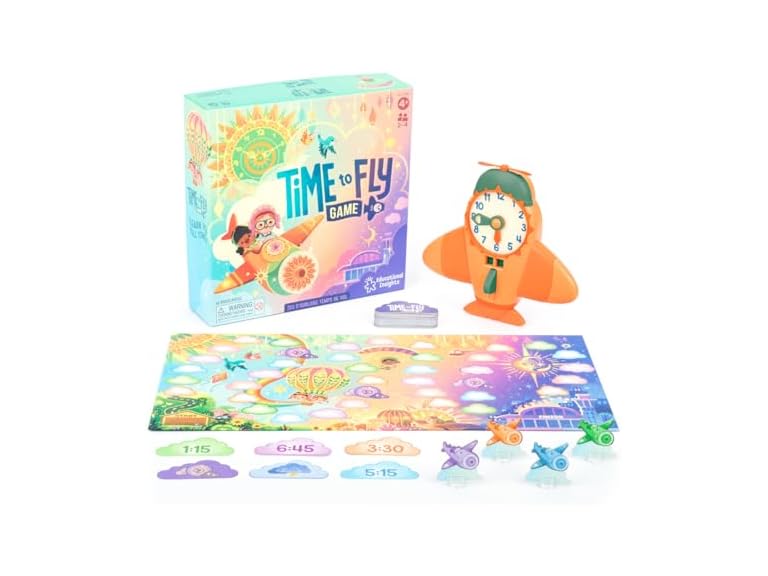 - (1) Educational Insights Time to Fly - Telling Time Board Game, Toddler Learning Clock Toy, Preschool Board Games, Number Recognition, Learn to Read Digital and Analog Clocks for Kids Ages 4+