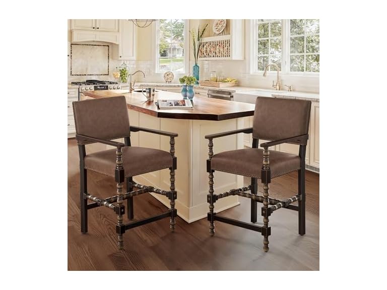 - Blending Vintage with Modern Craftsmanship: The legs feature a bobbin design, with sand-sashed finish creating a unique brown-espresso, giving it distinctive character without being too bold; it blends classic vintage design with modern craftsmanship, adding an elegant ambiance to the bar area