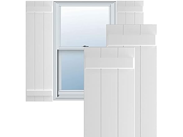 - Item Description: 16 1/8"W x 47"H True Fit PVC Three Board Joined Board-n-Batten Shutters, White (Per Pair - Hardware Not Included)