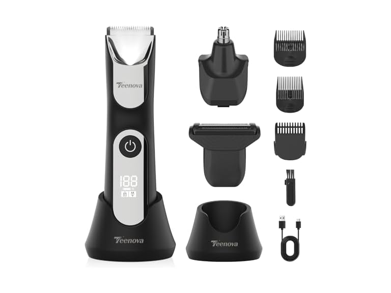 - 3-in-1 Versatility for Full Body Grooming - Experience the ultimate grooming flexibility with interchangeable ceramic blade head, foil shaver head and ear and nose hair clipper head. Driven by a powerful 7200RPM motor, this body groomer delivers a smooth, irritation-free trimming and precise shave on any body part, such as pubic, bikini, groin, leg, armpit, chest, beard, face etc. Body grooming kits for men & women.