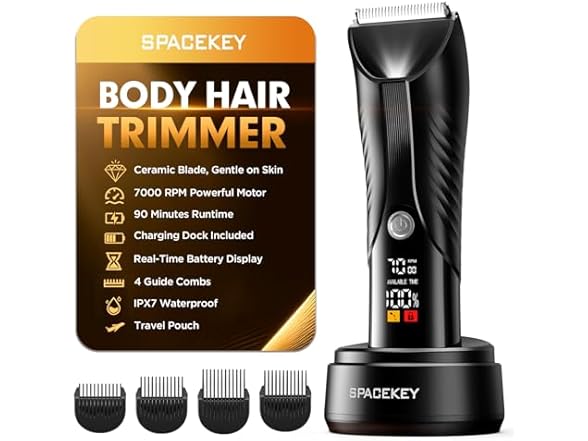 - SMOOTH SHAVING: Upgrade your care routine with the Spacekey Groin and Pubic Hair Trimmer. Say goodbye to the discomfort and pain of traditional razors with our cut-resistant blades and high-power motor for a faster, smoother, more comfortable shave. No more scratches or burns, just a clean and confident look