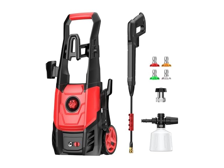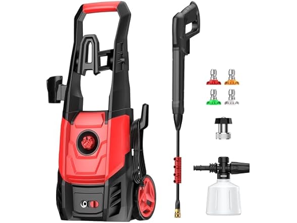 Electric Pressure Washer with Foam Cannon & 4 Quick Connect Nozzles