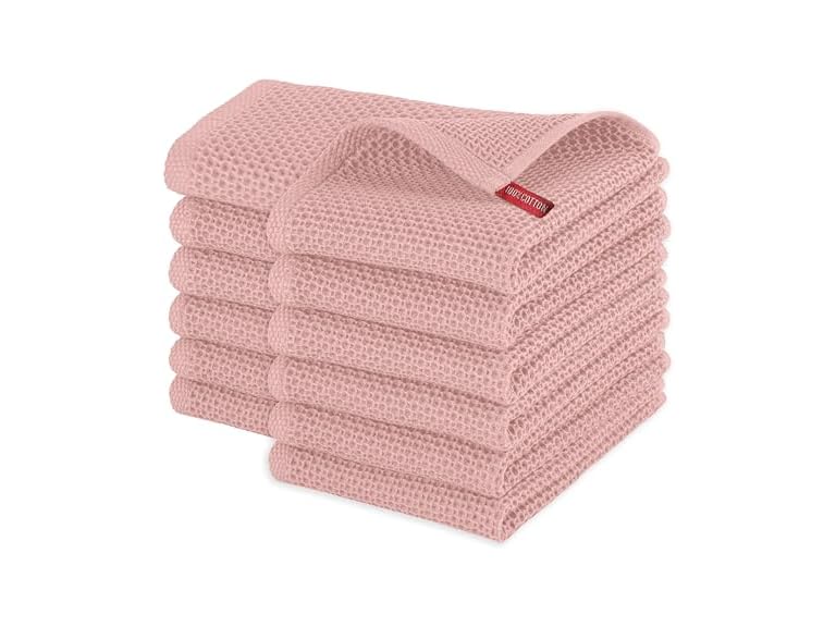 - (1) Elegant Comfort 100% Turkish Cotton 12-Pack Waffle Premium Kitchen Towels - Quick Drying and Super Absorbent Kitchen Dishcloth Towels, Ultra Soft Multi-Purpose Cleaning Towels, 16 x 25, Dusty Rose