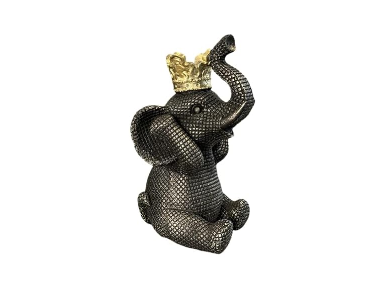 - HANDMADE ELEPHANT STATUES: made of high quality resin, waterproof and durable. Each elephant statue is handmade and hand-painted to give the elephant statue an exquisite finish and realistic skin detail. The white and black elephant body is painted in champagne gold color with persui to detail, showing the intricate design and craftsmanship that makes each piece unique.