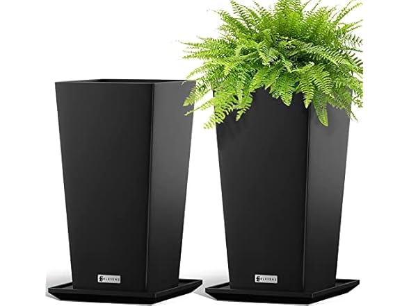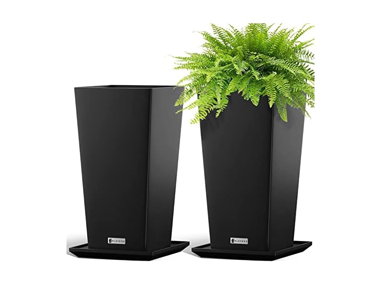 - Elevens Tall Planters 29 Inch Tapered Square Planters Garden Flower Pots,Indoor/Outdoor Planter with Tray, Large Planter for Patio Black-2 Pack (A-GE01001-1)