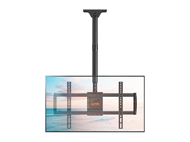 - Multi-Scenes Application: Ceiling mount for TV is ideal for shopping mall, airport, coffee shop, restaurant, gym, grocery store, school or your home. It fits both flat and sloped ceiling and is easy to install with necessary hardware and mounting template