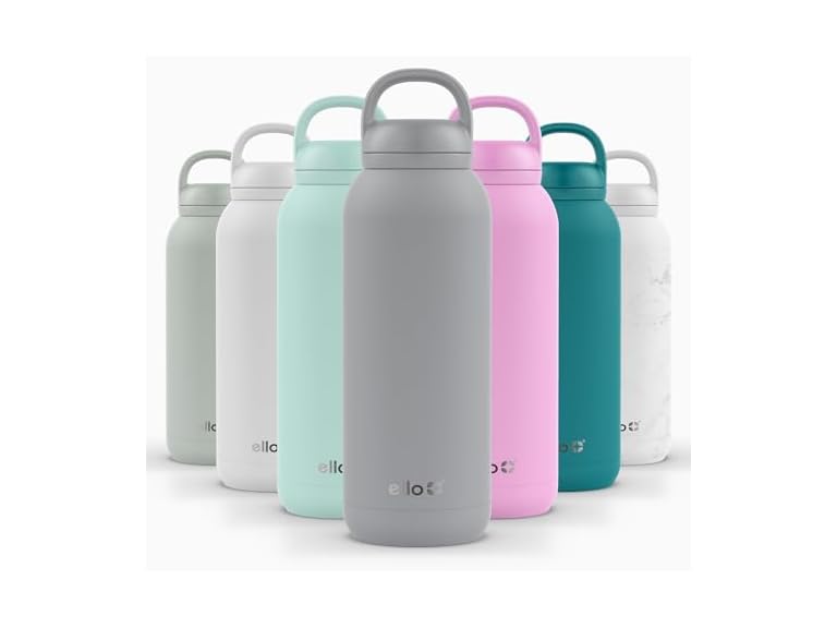 - (1) Ello Cooper Twist 40oz Stainless Steel Water Bottle with Chug Lid | Leak Proof | Double Walled and Vacuum Insulated | Built in Carry Loop | Dishwasher Safe | Gray