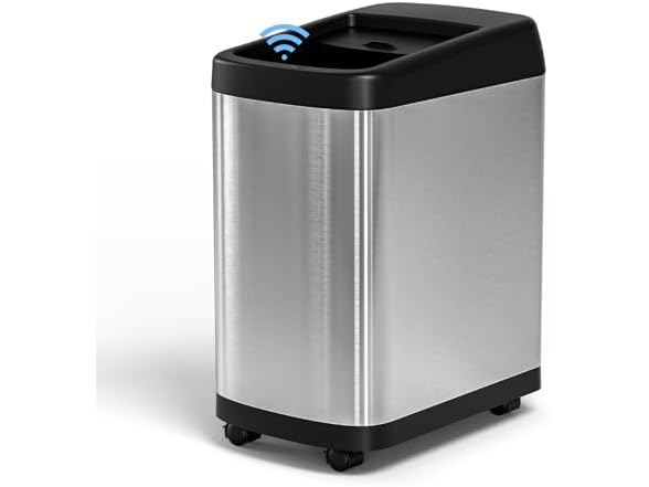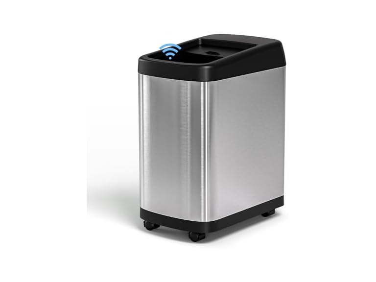 - (1) ELLO&ALLO 13 Gallon Kitchen Trash Can with Roll Up Lid, Automatic Touchless Motion Sensor Rectangular Trash Can with Wheels, Brushed Stainless Steel Finish