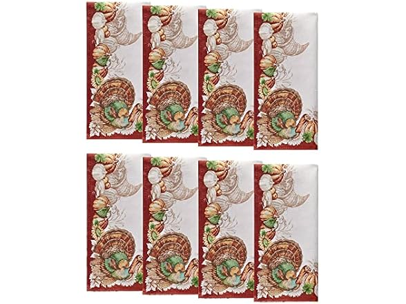- (1) Elrene Home Fashions Holiday Turkey Bordered Fall Napkins, Seasonal Fall Cloth Napkins, 17" x 17", Set of 8