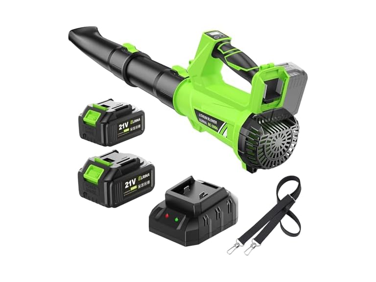 - Powerful Performance for All Surfaces: The ELRINA Leaf Blower delivers 650CFM of airflow, making it ideal for clearing leaves, debris, and dust from yards, driveways, and patios. Its 21V batteries ensures consistent power for heavy-duty outdoor maintenance without cords or noise pollution.