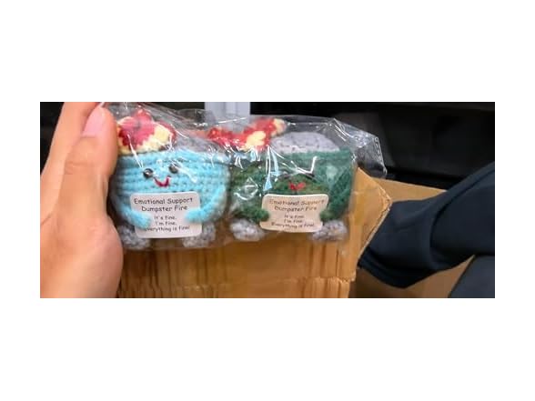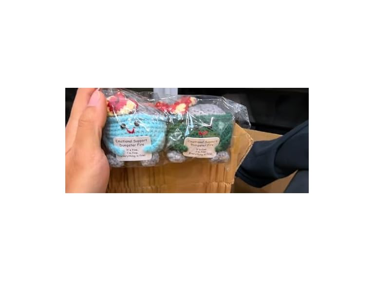 - 【Emotional Support Dumpster Fire】Amid life’s chaos, our Emotional Support Crochet Dumpster Fire with a heartwarming attached card offers a touch of encouragement. Embrace the ups and downs with this cozy little reminder that, no matter how wild things get, you can face it all with a light heart and a smile.
