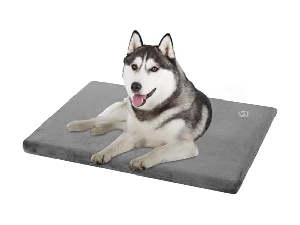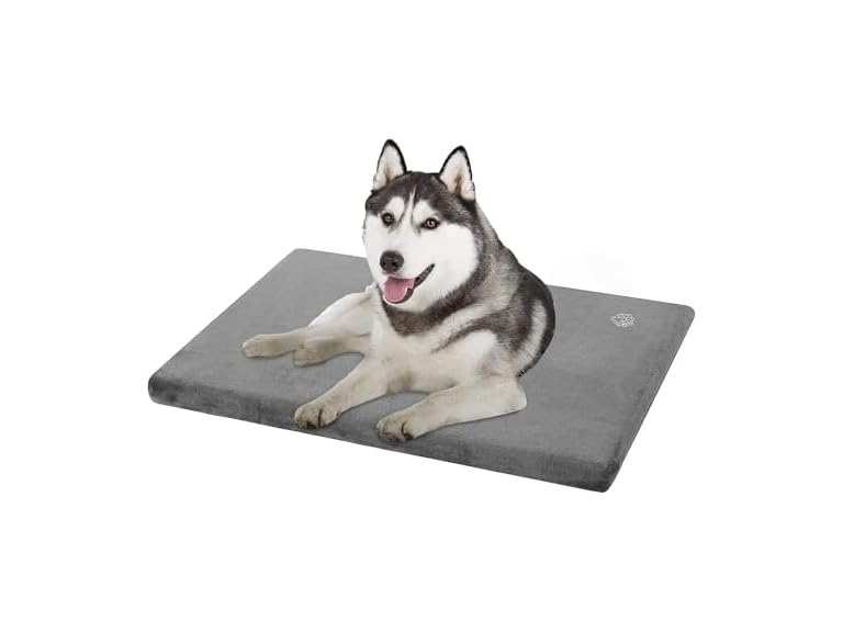 - (1) EMPSIGN Stylish Dog Bed Mat Dog Crate Pad Mattress Reversible (Cool & Warm), Water Proof Linings, Removable Machine Washable Cover, Firm Support Pet Crate Bed for Small to XX-Large Dogs, Grey