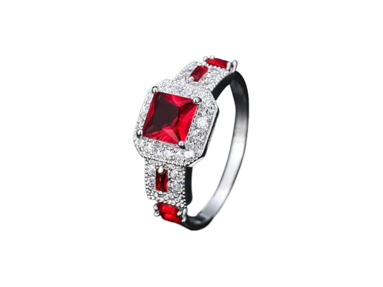 - (1) Emsione Inlaid Square Red Zircon Boho Fashion Ring Charms Jewelry Birthday Eternity Anniversary Wedding Engagement Band Ring For Women Men Size 7
