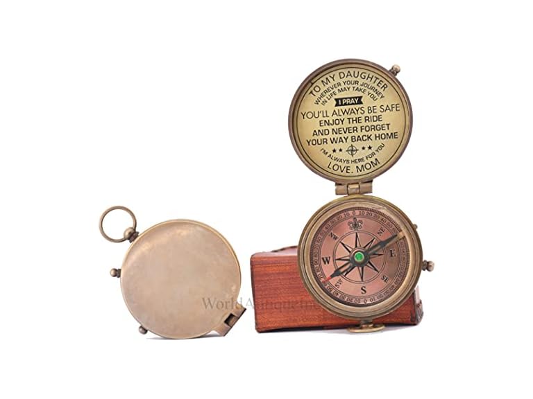 - Engraved pocket compass with leather case featuring the saying "To my Daughter: wherever your journey in life may take you, I pray you’ll always be safe. Enjoy the ride and never forget your way back home. I’m always here for you." LOVE MOM. What’s more unique than a personalized gift? Saying never comes off so the personalized gift will be appreciated by your Daughter for many years to Come.