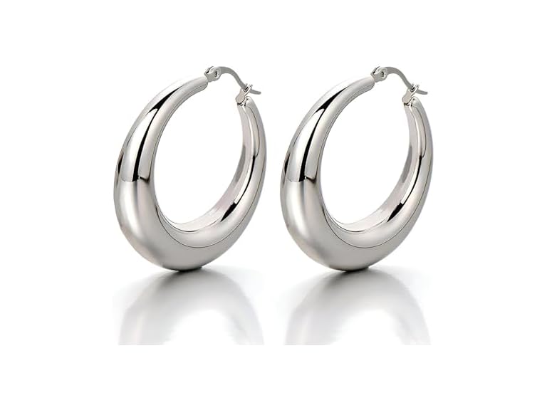- (1) Envedette Silver Hoop Earrings for Women Hypoallergenic Stainless Steel Earrings Lightweight Trendy Chunky Hoops (Glossy, silver)