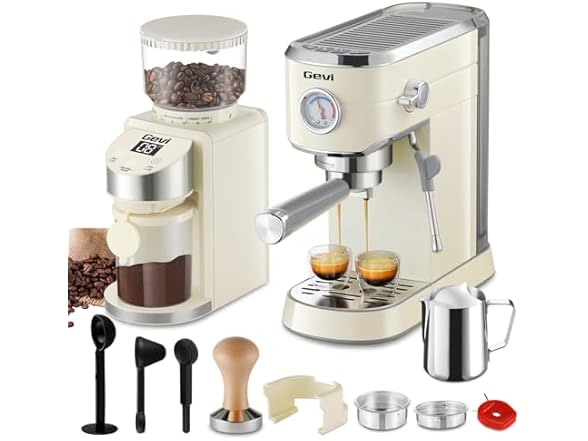 - 【ENJOY DELICIOUS ESPRESSO COFFEE DRINKS】 The Gevi stainless steel espresso machine with burr grinder enables you to make a variety of café-quality beverages; such as Mocha; Macchiato; Espresso; and Americano