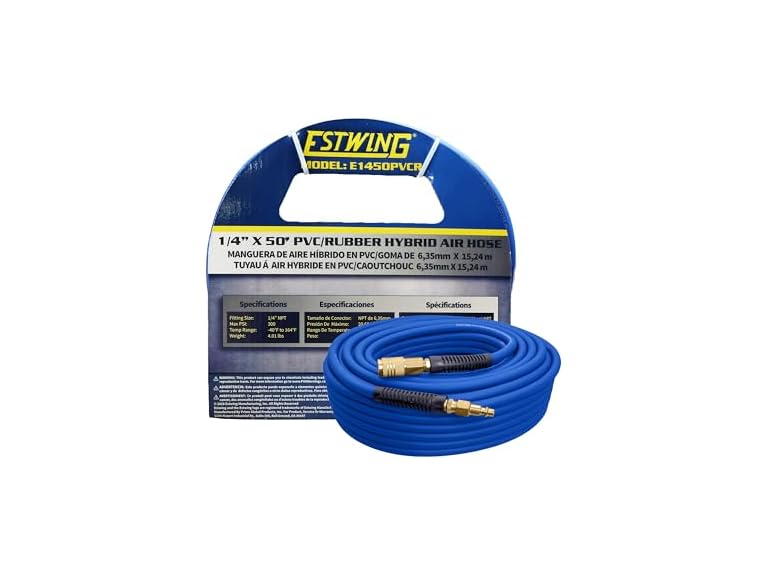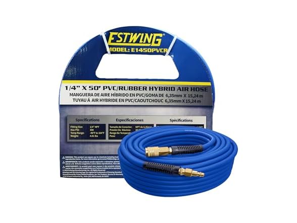 - Estwing E1450PVCR 1/4" x 50' PVC / Rubber Hybrid Air Hose with Brass 1/4" NPT Industrial Fitting and Universal Quick Connect Coupler