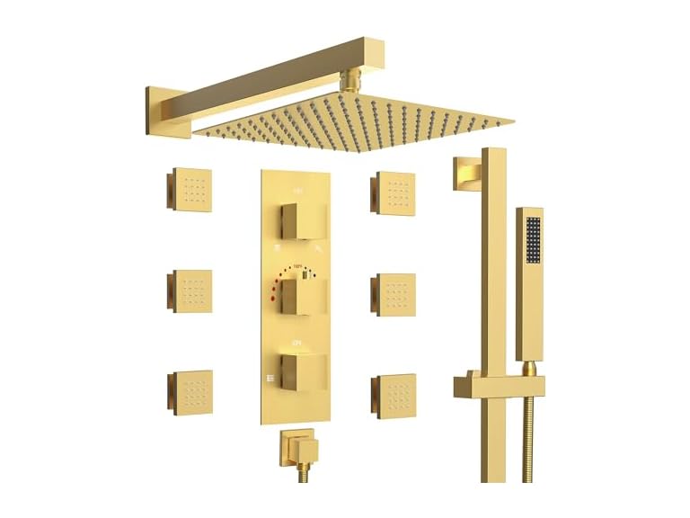 - 5 Spray Shower Patterns: 5 Spray Shower Patterns: Featuring a 12-inch rainfall shower head, 6 body jets, and a handheld shower. Enjoy five unique spray combinations for a customized and invigorating shower experience.