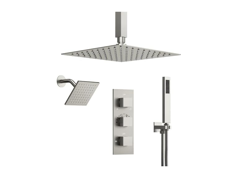 - Included Components 12" rainfall shower head, 6" shower head, Shower fixtures & valve, handheld shower head