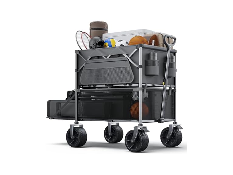 Everyfun 480Lbs Foldable Double Decker Wagon- Grey