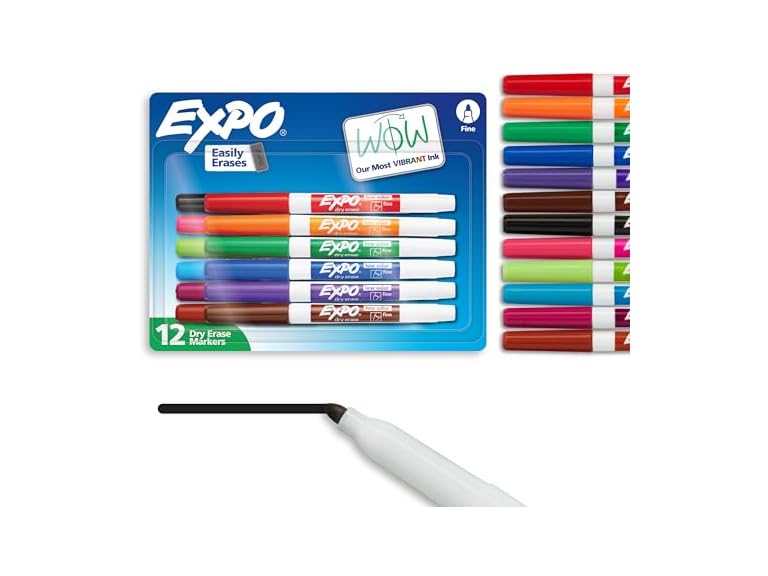 - EXPO Dry Erase Markers, Low Odor Ink, Assorted Colors, Fine Tip, 12 Count - Whiteboard, Calendar, Organization, Essential Supplies for Office, School, Classroom, Teachers