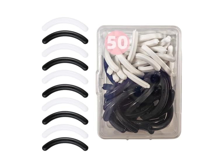 - Eyelash Curler Refill Pads - Rubber Silicone Rubber Universal Eye Lash Curler Replacement with Clear Storage Box (Multicolor) (Rubber Black and White -50 Pieces)